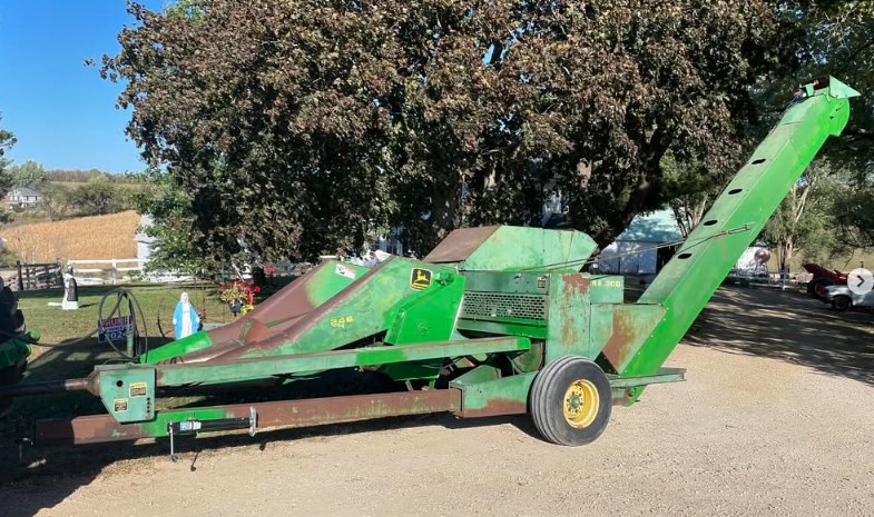 John Deere 300 husker was purchase by Jerome and Dean Fedkenheuer from Deerfield, Wisconsin. Jerome and Dean pick ear corn for there feeder cattle and wanted to move to an ear corn picker that would not shell at the cornhead. Jerome and I picked a load of corn and he looked at the field results and he told me there is no shell corn on the ground compared to New Idea ear corn picker that would shell constantly at the cornhead. Jerome was also happy with the good husk ability and cleaning of the ear corn through his new to him John Deere 300 husker.